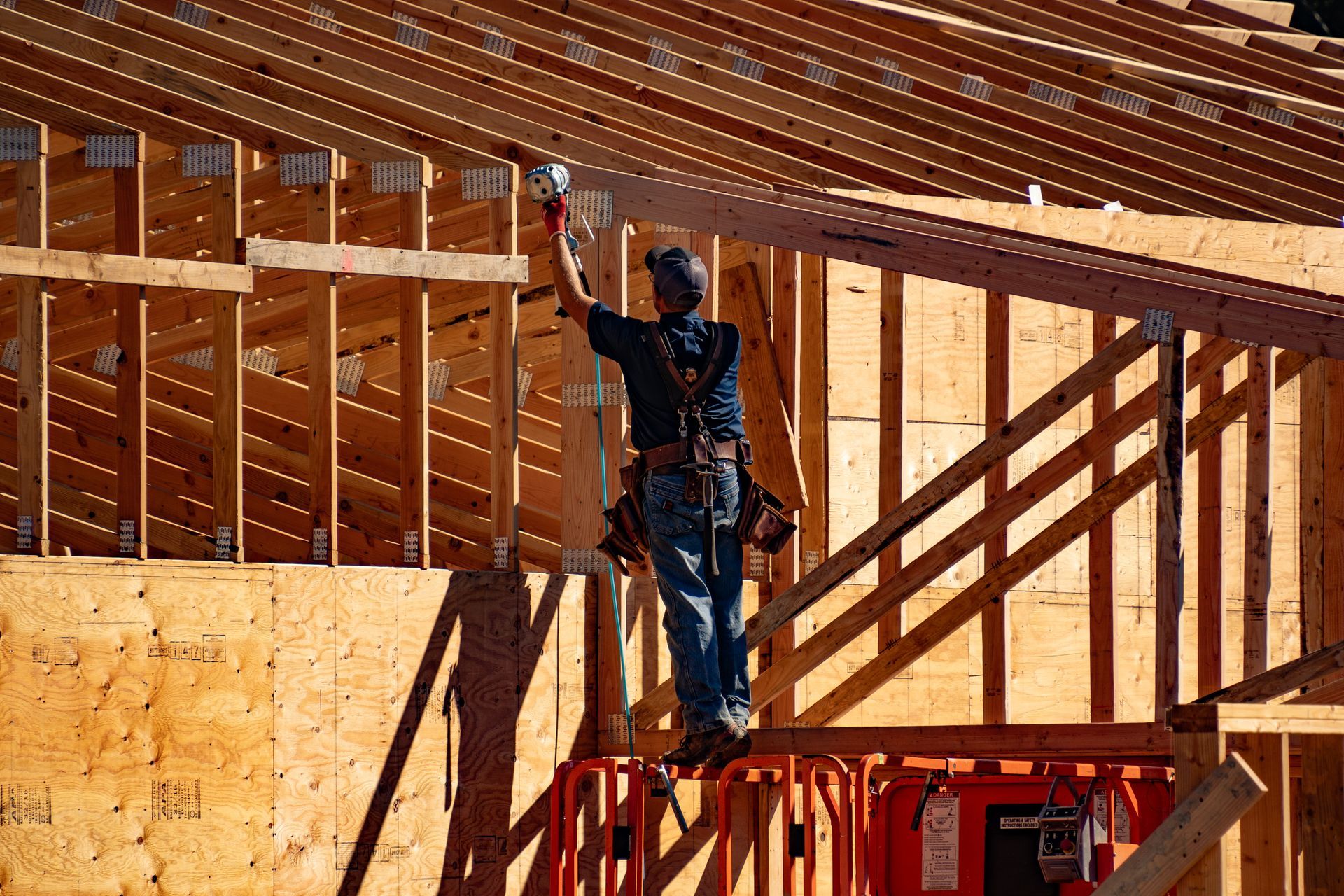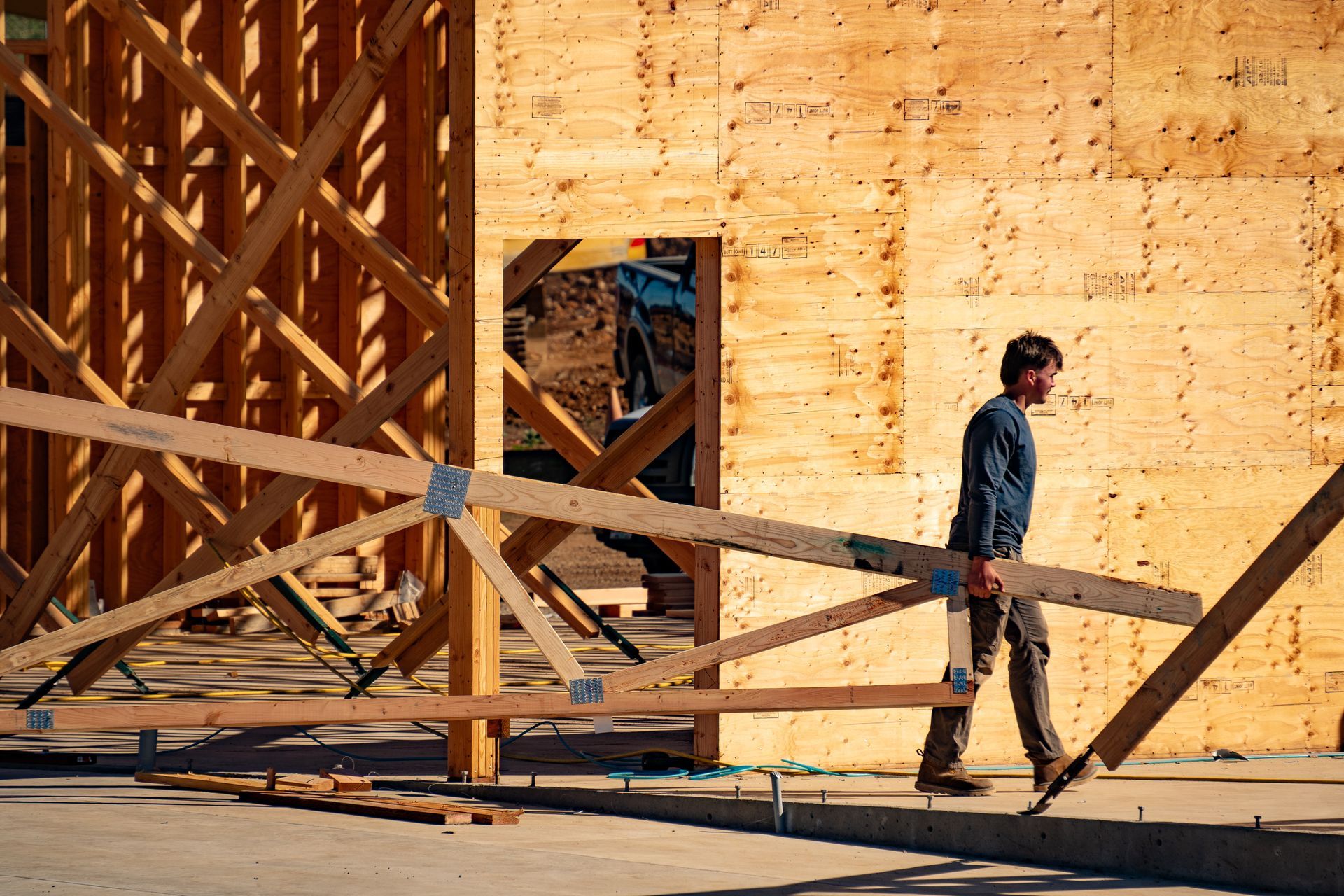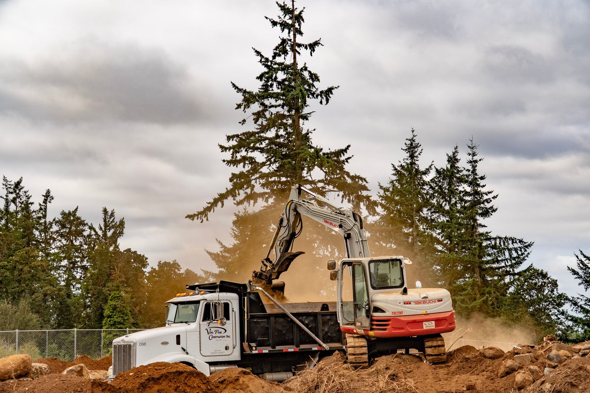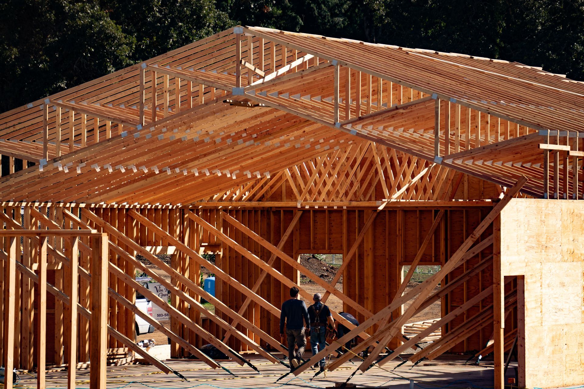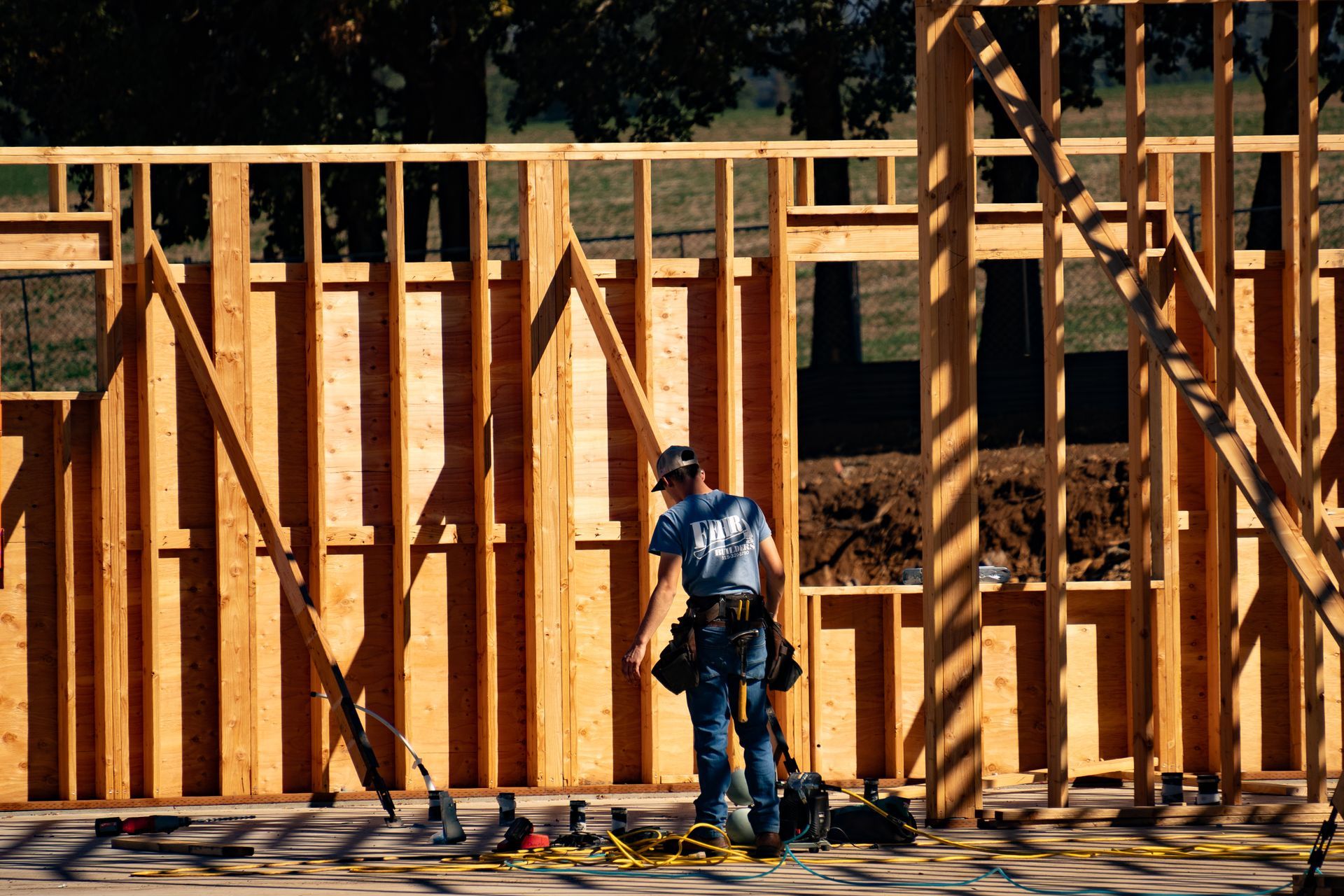 Trusses are being installed and framing continues throughout the building. The parking lot grading and landscaping areas — including the detention pond — are also taking shape.
